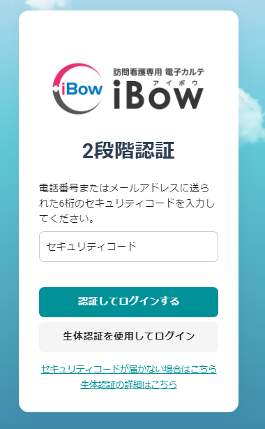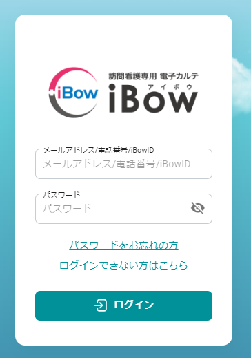 ・「訪問看護専用 電子カルテ iBow」と記載されたログイン画面よりアクセスしている方向け