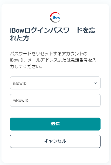 2.iBowID・メールアドレス・電話番号のいずれかを入力し、送信します。